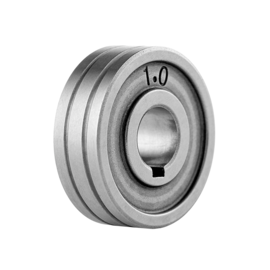Сменный элемент подающего механизма сварочного аппарата. Ролики подающие подбираются в зависимости от вида сварочной проволоки и её диаметра. Данные ролики предназначены для работы со стальной, алюминиевой, порошковой проволоками диаметром 0.8—1.0 мм.