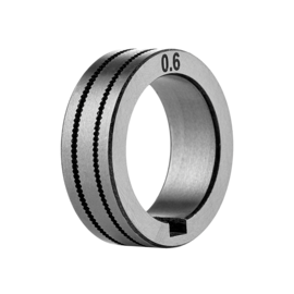 Сменный элемент подающего механизма сварочного аппарата. Ролики подающие подбираются в зависимости от вида сварочной проволоки и её диаметра. Данные ролики предназначены для работы со стальной проволокой диаметром 0.6 мм.