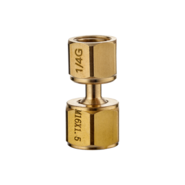 Переходник 1/4 (внут)—М16×1.5 (внут) предназначен для перехода с резьбового соединения 1/4G (внут) на резьбовое соединение М16×1.5 (внут). Материал— латунь.