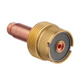 Держатель цанги (бол. г.л.) (TS 17—18—26) применяется для фиксации и поджатия цанги, а также для установки сопел и подачи и распределения в них защитного газа. Используется для установки стандартных сопел в головке горелок TS 17, TS 18, TS 26, их модификациях и аналогах. Материал— медь.