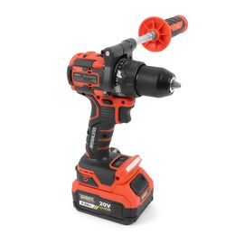 Бесщеточный двигатель обеспечивает длительную эксплуатацию, мощный 20-ти вольтовый аккумулятор с емкостью 4 Ah, крутящий момент в 100 Нм с 18-ти ступенчатой регулировкой, 2-х скоростной редуктор с блокировкой шпинделя – все это позволяет сверлить отверстия в металле, дереве, пластике и других материалах, а также работать с шурупами и саморезами разных длин и диаметров.